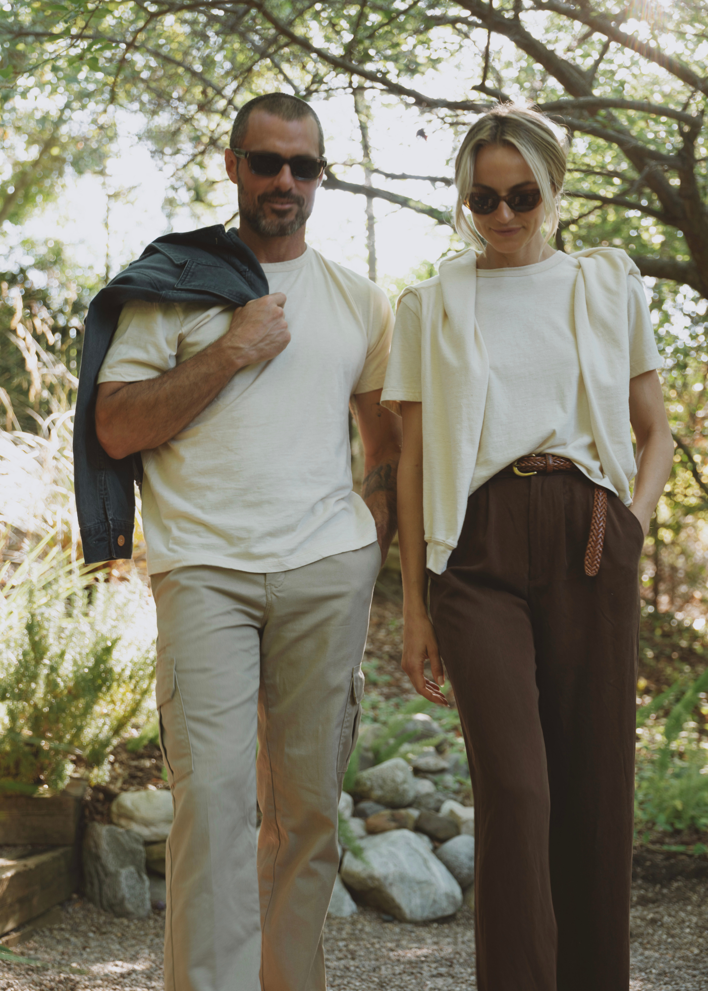 The finished fabric is then cut and sewn into garments by skilled artisans. Our knit pieces - ie: tees and sweatshirts - are crafted in Georgia with the perfect drape. While our woven pieces - ie: trousers and jackets - are tailored in Pennsylvania for a structured, timeless silhouette.